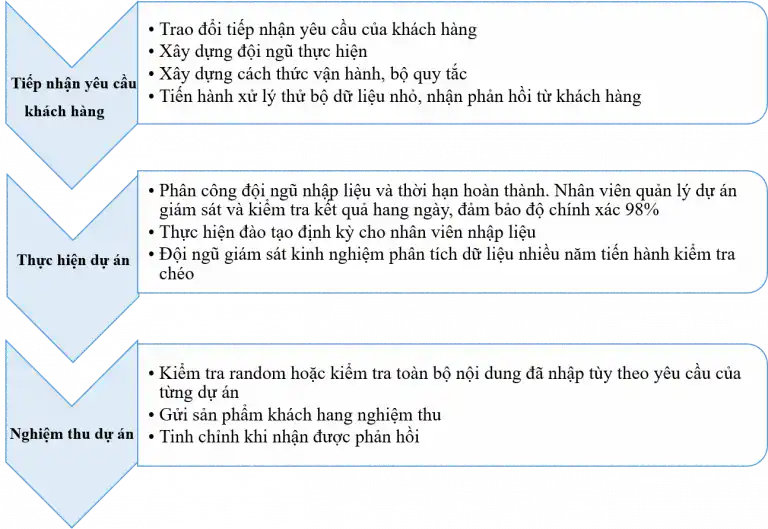 The process of implementing the Data Entry Outsourcing project at SK-HR is refined through steps to ensure high accuracy. Completion time meets business requirements.